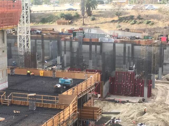 停车场裙楼A1区地下一层楼板混凝土施工工作已经完工;