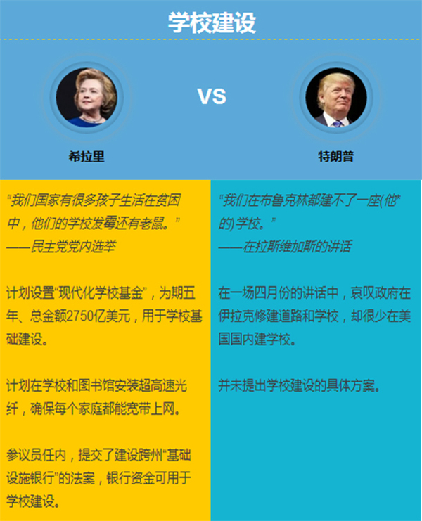 7月19日唐纳德·特朗普正式当选美国2016总统大选共和党候选人。不出意外,下一届总统的人选将在特朗普与他的竞争对手民主党候选人希拉里·克林顿之间产生。两党候选人的教育立场和观点将是影响美国教育未来的重要因素。从他们的主张,也可以看到美国社会最为关注的教育核心问题是什么。