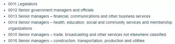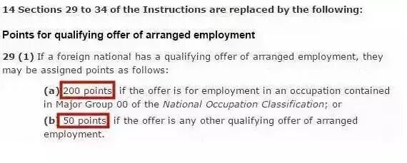 如果工作是属于全国职业分类(National Occupation Classification,简称NOC)下主要组别(Major Group)00分类,则为200分;