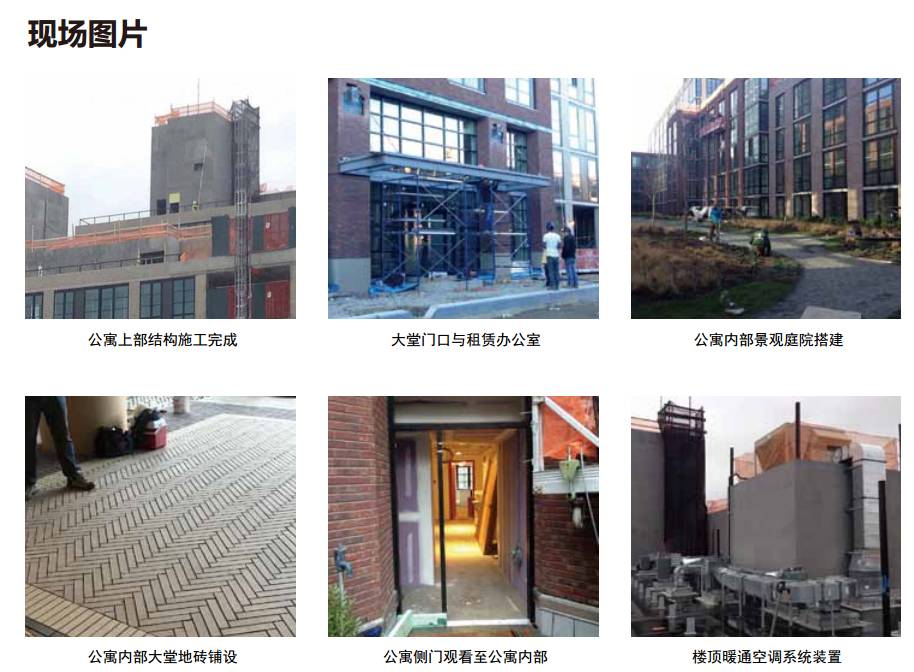 截至2015年11月底,公寓上部结构施工完成,整幢建筑封顶,窗体全部安装完毕。项目工程已过渡至室内装潢阶段,目前进行至各层构架、厨房与浴室装潢。大堂以及配套设施空间的装潢正式开始。